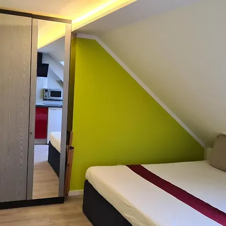 Oven and a dishwasher are provided in a kitchen area of the apartment. Central, Urban Townhouse With Private Roof Deck is in the immediate vicinity of Euclid-Century bus station. Guests are invited to relax on a patio.